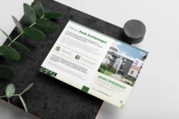 Zaprojektowane przez naszych specjalistów materiały reklamowe i biurowe takie jak: katalog sprzedażowy, ulotki, banery, billboardy, papier firmowy, wizytówki itp. W znacznym stopnie przyłożyły się na szybki wzrost rozpoznawalności inwestycji i budowanie zaufania do marki nieruchomości.